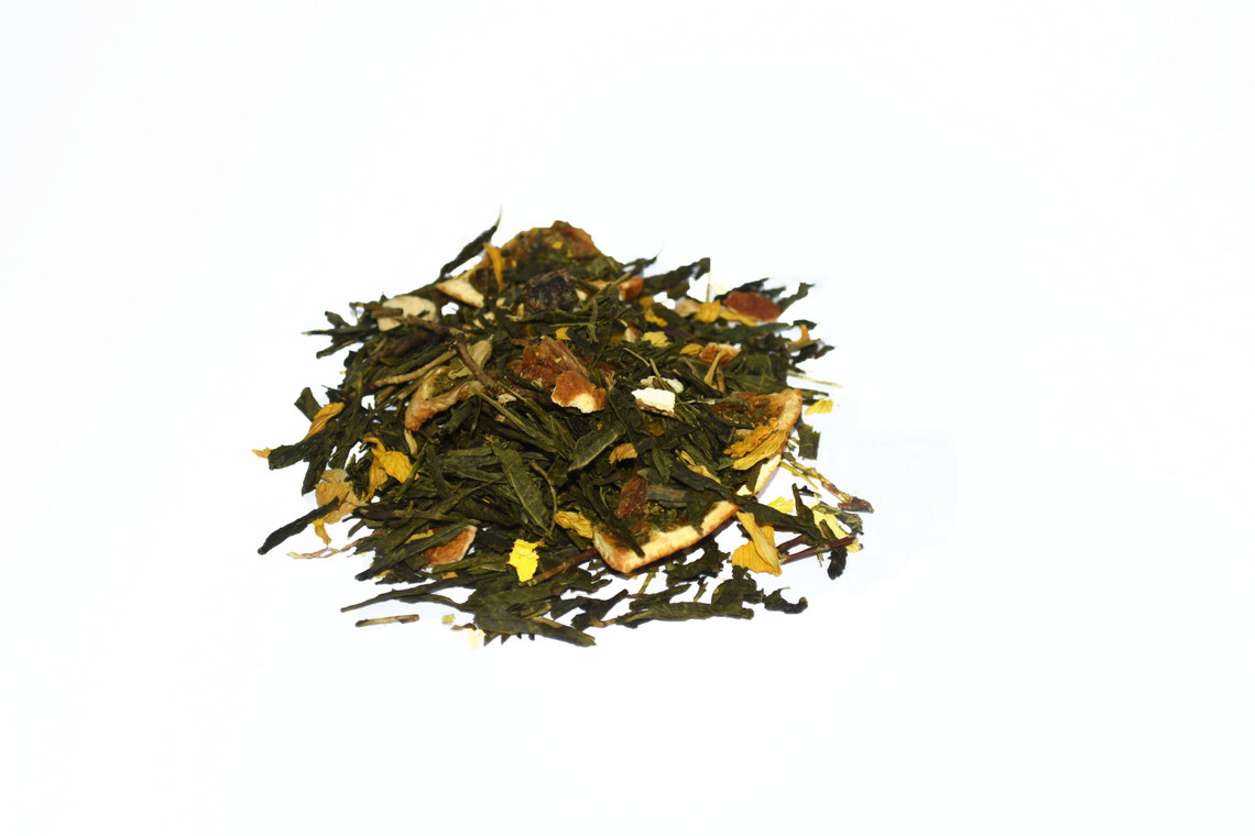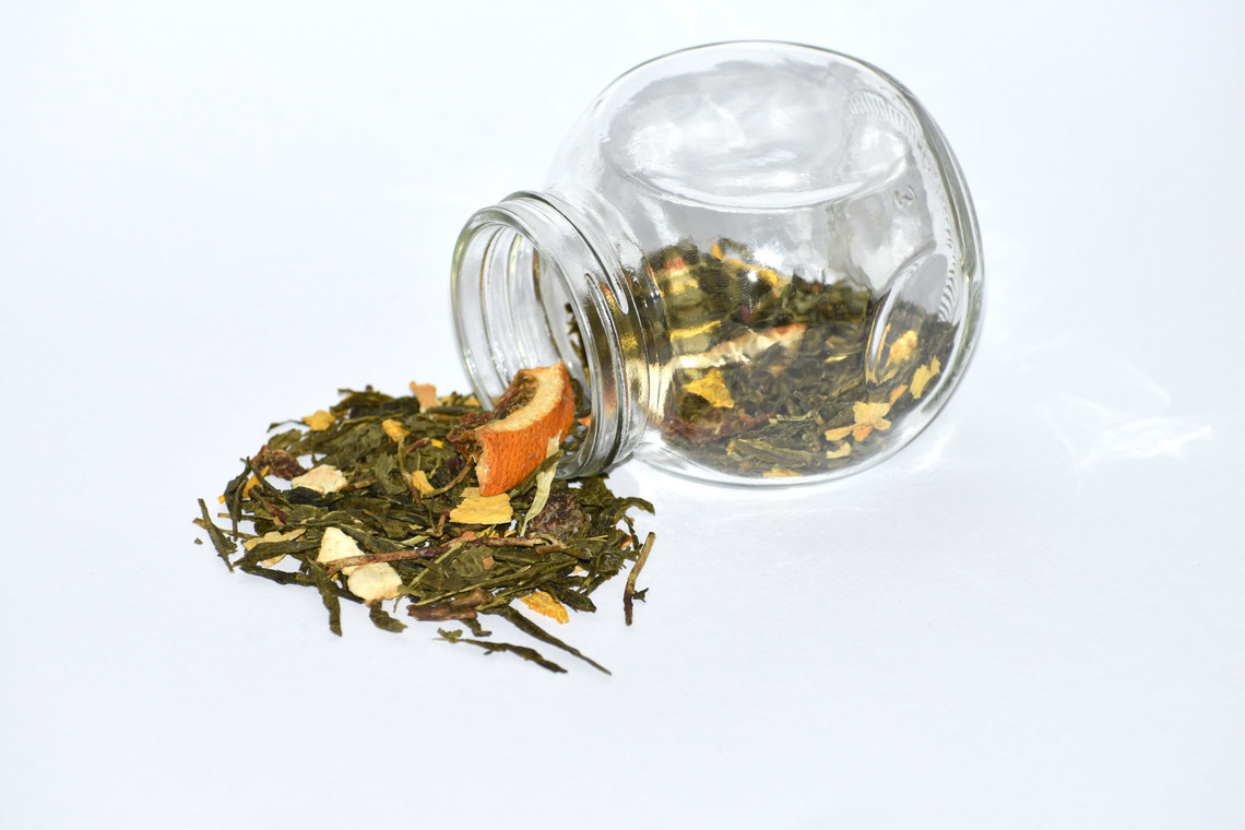 Groene thee met perzik en sinaasappel is een heerlijke fruitige thee.